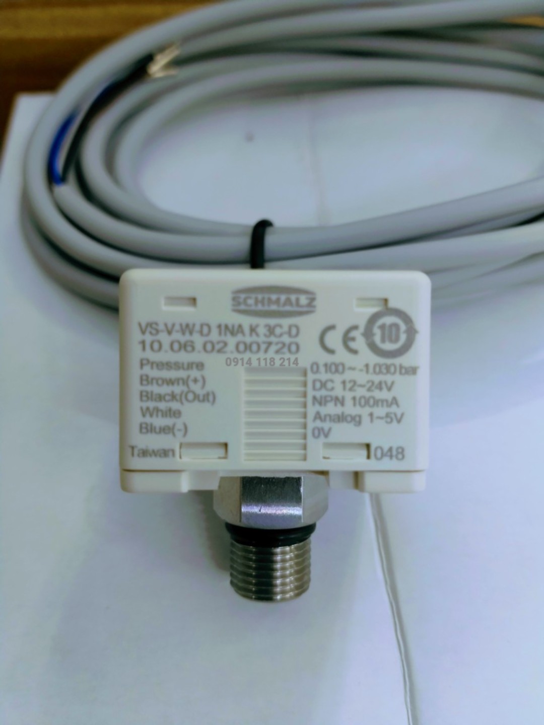 Thông tin sản phẩm: Tên: Cảm biến áp suất Model: 10.06.02.00720 Thương hiệu: SCHMALZ Tần số: 12-24VDC Xuất xứ: Hàn Quốc