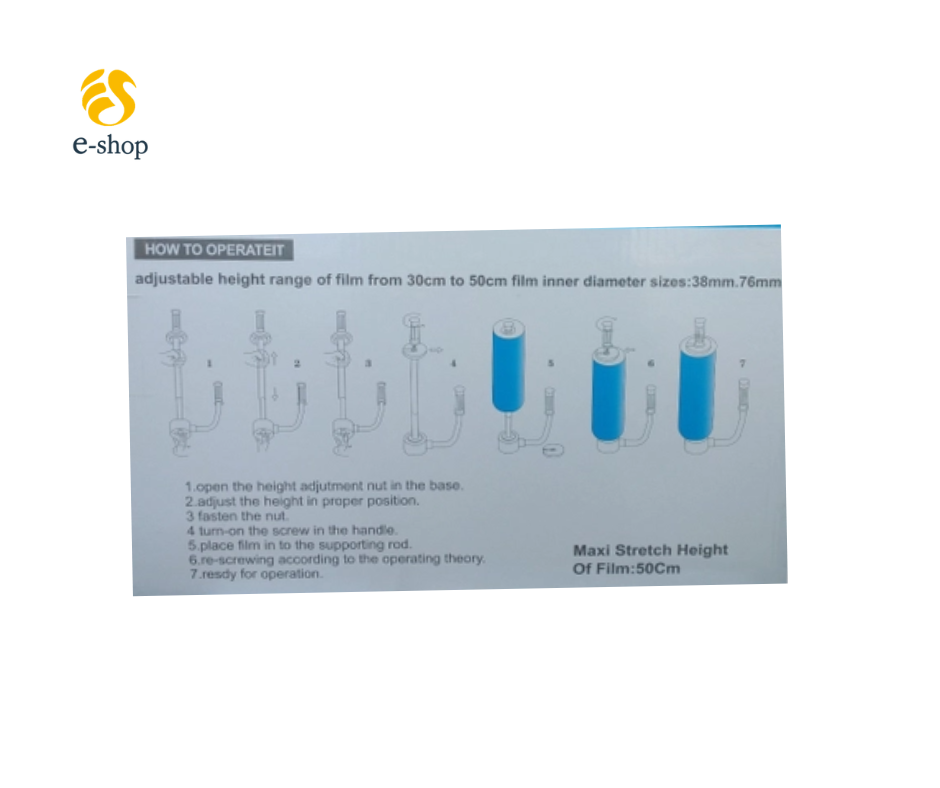 -Dụng Cụ Quấn Màng PE Inox Cầm Tay cấu tạo đơn giản, gọn nhẹ, dễ sử dụng, có thể dùng cho cuộn màng cao 30 - 50cm, lõi cuộn màng từ 38mm đến 76mm.