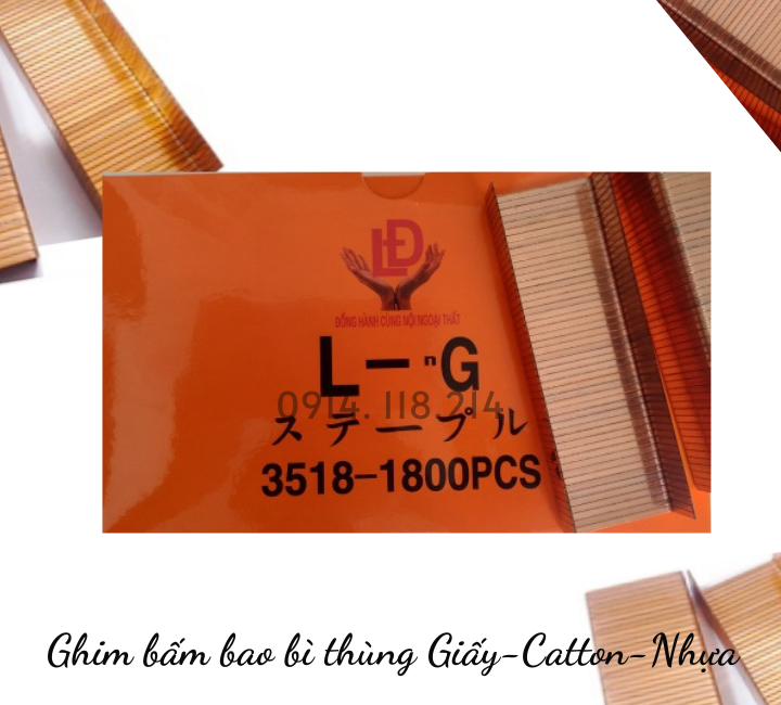 Ghim bấm 3518-1800PCS hộp Cam LnG ghim bấm bao bì 35x18mm