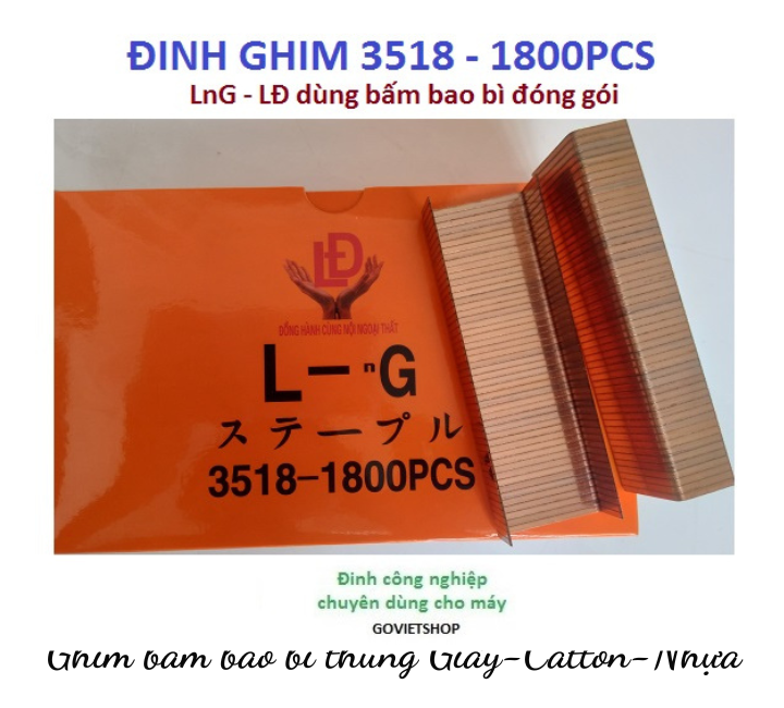 - Đinh ghim bấm 3518 được dùng để bấm làm bao bì, bấm tạo liên kết vật liệu, nạp kim ghim 3518 vào thiết bị máy bấm đinh 3518 để thao tác bấm liên kết. Ứng dụng nhiều trong công tác đóng gói sản phẩm, bấm bao bì nhựa, bao bì giấy, bao bì giấy catton, bao bì mành nhựa …